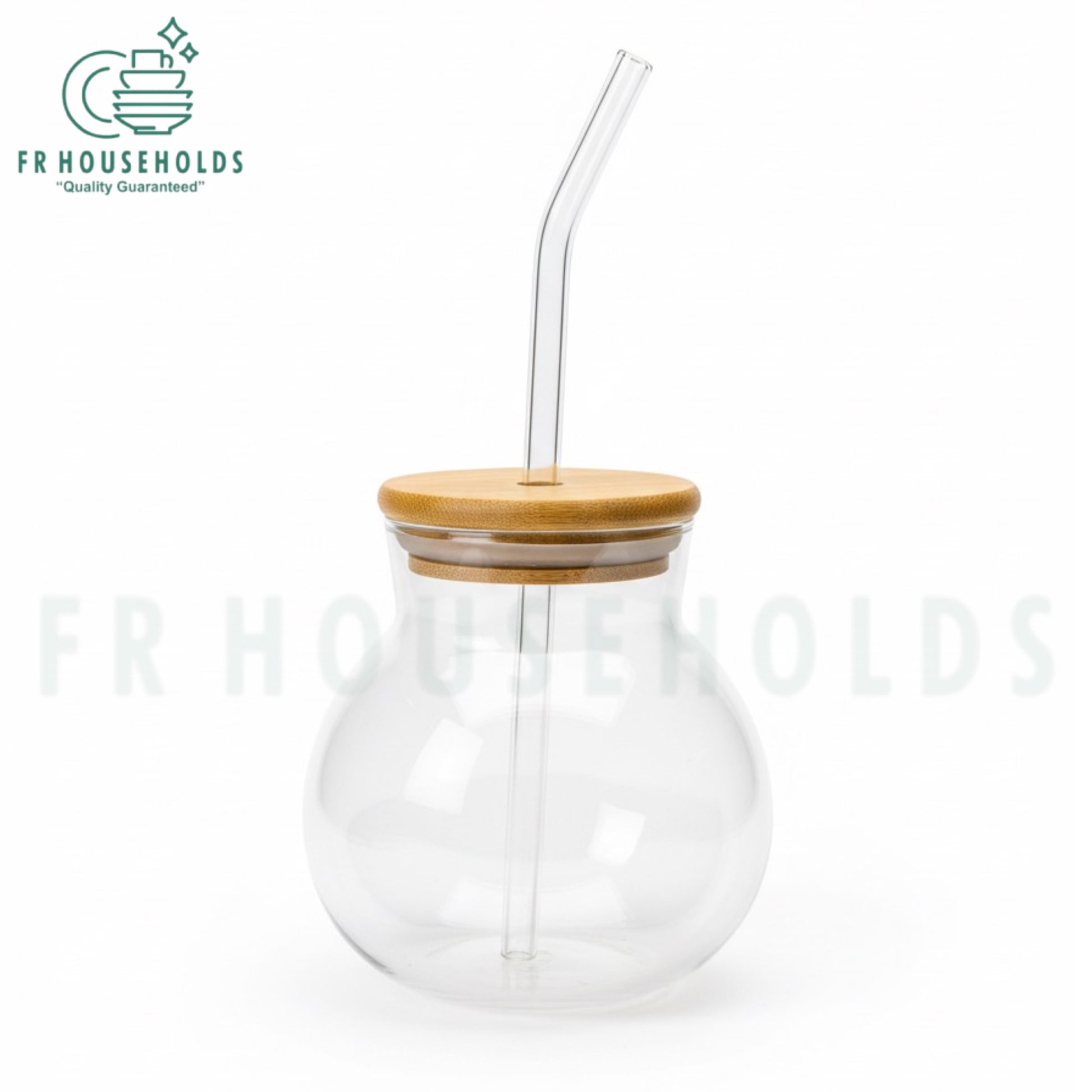 Pomegranate Shape Beverage Serving Glass with Bamboo Lid & Straw – 400ml